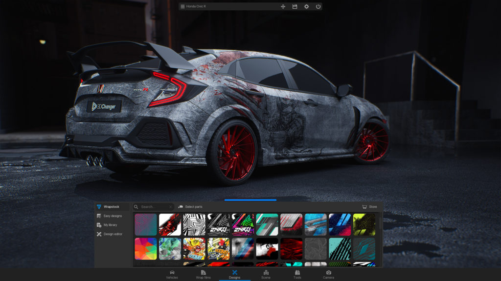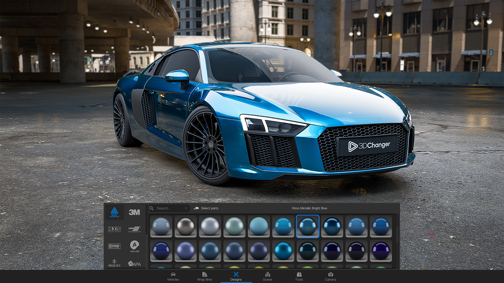 3D Changer jsme vyvinuli na základě dlouholetých zkušeností v oboru polepu automobilů. Vše jsme diskutovali s designéry, abychom vyhověli jejich potřebám, a pomohli jim tak při každodenní práci Hrajte si a užijte si proces změny designu a barev ve 3D Changeru. Importujte svůj design do konfigurátoru, zobrazte jeho náhled na jakémkoli typu automobilu, přizpůsobte kola a zkontrolujte vzhled vozu v různých scénách. Design nikdy nebyl přístupnější. Poskytněte zákazníkovi ten nejlepší zážitek.